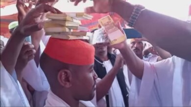 شاهد بالصورة والفيديو.. في تقليعة جديدة وبدلاً من النقطة.. رجل سوداني ثري يرص حزم من الأموال على رأس صديقه العريس ومتابعون: (رأس العريس أصبح كالبنيان بالمال بدلا من الطوب)