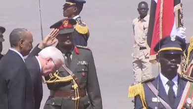 الرئيس الألماني ينحني لتحية العلم السوداني خلال مراسم استقباله