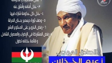 تداول ناشطون على مواقع التواصل الاجتماعي صوراً ساخرة لزعيم حزب الأمة الصادق المهدي واطلقوا عليه لقب (زعيم الخذلان)، عقب مخاطبته…