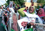 طالب متظاهرون من ذوي معتقلي رموز نظام الرئيس السابق عمر البشير، يوم الأربعاء، أمام مبنى مجلس الوزراء، رئيس الحكومة الانتقالية،…