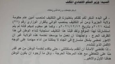 فى تطوُّرات جديدة للاحداث بولاية الجزيرة قدم الوالي المُكلّف استقالته من منصبه وفق صحيفة السوداني الخرطوم ( كوش نيوز)