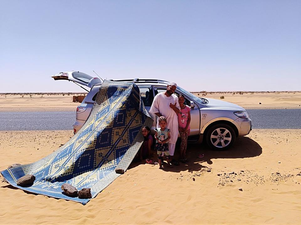 وأضاف الحكيم : ( نعتذر لاهالي مروي وما حولها عن قيام الاسبوع الدعوي )، وظهر الحكيم من خلال الصورة التي أرفقها طالباً للنجدة، ظهر هو وأطفاله يحتمون بمفرش من حر الشمس في قلب الصحراء .