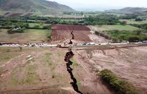 وفقا لصحيفة «ميرور» البريطانية، فقد أظهرت تلك اللقطات المتخذة حديثا، حجم النمو في الصدع الضخم الذي يهدد بتمزيق القارة بداية من كينيا بعد أن أدى إلى نشاط زلزالي مدمر محتمل، وتسبب في انهيار جزء من طريق نيروبي ناروك السريع، في جنوب غرب كينيا.