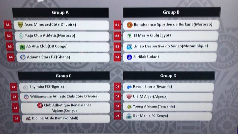 أوقعت قرعة مجموعات الكونفدرالية التي تسحب الآن بالعاصمة المصرية القاهرة، الهلال في المجموعة الأولى إلى جانب المصري البورسعيدي، ودو سونغو الموزمبيقي ونهضة بركان المغربي، وسيبدأ الأزرق مبارياته من خارج ملعبه في السادس من مايو المقبل وضمت المجموعة الأولى اسيك، الرجاء، فيتا كلوب وادونا استارز، فيما جاءت المجموعة الثالثة من انيمبا النيجيري زافيل الايفواري، كارا الانغولي وجوليبا المالي فيما ضمت المجموعة الرابعة كل اتحاد العاصمة الجزائري، رايون سبورت الراوندي، الشباب التنزاني وقورماهيا الكيني.