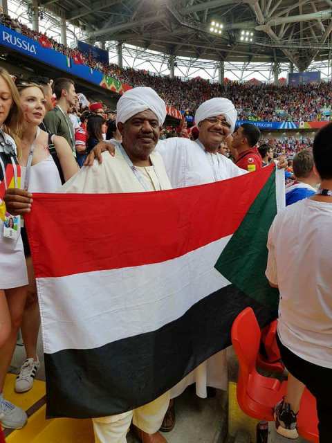 أثارت صورة لسودانيان يرفعان علم السودان بأحد الملاعب الروسية التي تحتضن المنافسة الأولى لكرة القدم كأس العالم والذي يجرى هذه الأيام بروسيا إعجاب الكثيرين داخل مواقع التواصل الاجتماعي المختلفة.