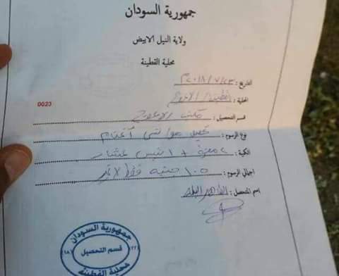 تبادل رواد مواقع التواصل الإجتماعي بتهكم فرض حكومة ولاية النيل الأبيض السودانية محلية القطينة رسوماً على الفحول من التيوس بالولاية بحسب مانقل محرر كوش نيوز ، وأظهر إيصال مالي مُرفق بتاريخ 23-7-2018 تحصيل رسوم مواشي أغنام قدرها مائة وخمسة جنيهاً لمعزتين وتيس “عشار” أي فحل بالغ وصل سن الرشد.