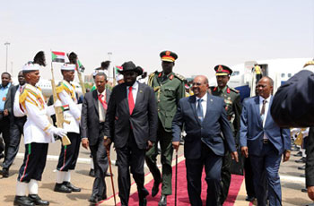 وصل الخرطوم يوم الأحد رئيس دولة جنوب السودان سلفاكير ميارديت، والرئيس الكيني أوهورو كينياتا، والرئيس الجيبوتي إسماعيل عمر قيلي، ورئيس وزراء الصومال، حيث سيوقع سلفاكير اليوم اتفاقاً مع المعارضة الجنوبية بحضور القادة الأفارقة ومسؤولين في الاتحاد الأفريقي.
