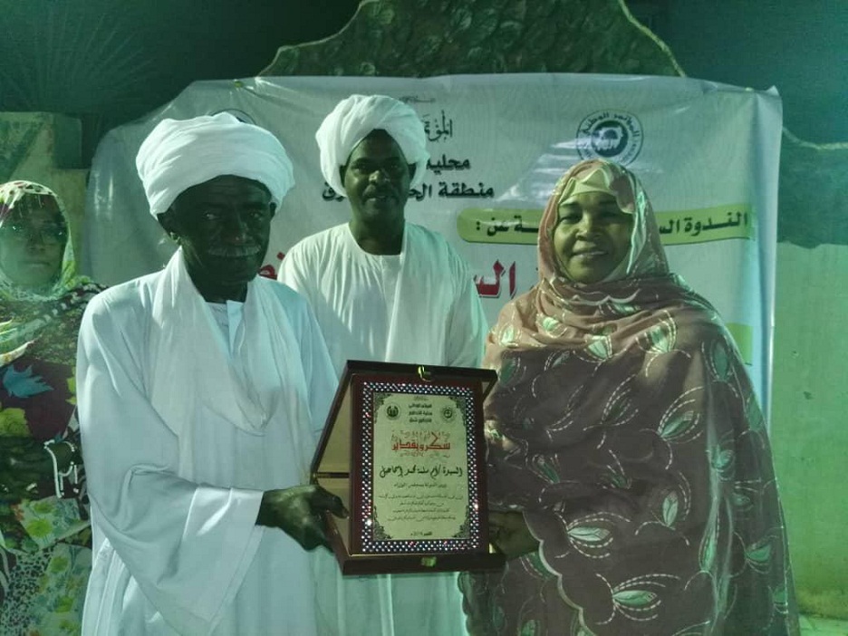 كرمت وحدة الخرطوم شرق بمحلية الخرطوم بحضور معتمد محلية الخرطوم الفريق أحمد ابو شنب ورئيس القطاع السياسي بالمؤتمر الوطني ولاية الخرطوم دكتور علي نمر وعدد من القيادات التنفيذية والتشريعية والسياسية وبمشاركة واسعة من سكان المنطقة كرمت وزير الدولة بمجلس الوزراء نائب امين المرأة بالمؤتمر الوطني دكتور ام سلمة محمد إسماعيل النور كواحدة من قيادات المنطقة التي قدمت الكثير لاهلها من خلال تكليفها بعدد من المواقع وتدرجها في العمل السياسي والتىفيذي حتى نالت ثقة رئيس الجمهورية بتعيينها وزير دوله بمجلس الوزراء