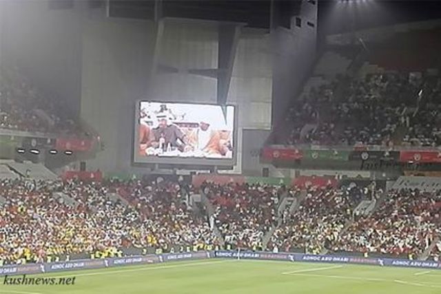 و قبل بداية المباراة بدقائق أعلنت المذيعة الداخلية للاستاد عن عرض فيديو يتحدث عن العلاقات الإماراتية السودانية، ولم يتوقع أكثر المتفائلين بأن يكون العرض لمشهد سابق بين الرئيس السوداني عمر البشير والشيخ محمد بن زايد رجل الإمارات القوي، وهما يتحدثان عن عمق العلاقات بين الدولتين والشعبين، واشتهر ذلك اللقاء عندما كان يتحدث فيه الشيخ محمد بن زايد ولي عهد أبوظبي وهو يضع يده على ركبة الرئيس البشير لعدة مرات في تواصل حميم تفتقده العلاقات بين الدولتين في هذه الفترة، والتي يبدو أن دولة الإمارات تحاول أن ترسل رسالة رقيقة للبشير من خلال هذا الحدث الكبير بأن الفرصة مازالت قائمة لتطوير العلاقات بشكل أفضل، لاسيما أن الساحة الدولية بها كثير من المتغيرات التي تستدعي اتخاذ القرارات الحاسمة.