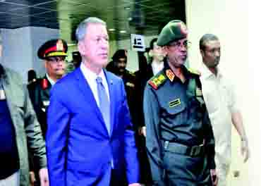 ووصل مساء أمس وزير الدفاع التركي إلى الخرطوم في زيارة تستغرق يومين على رأس وفد يضم قائد القوات المسلحة التركية ياشار غولر، وأجرى خلال زيارته لقاءات بالرئيس السوداني ومباحثات مع وزير الدفاع وقيادات الجيش.