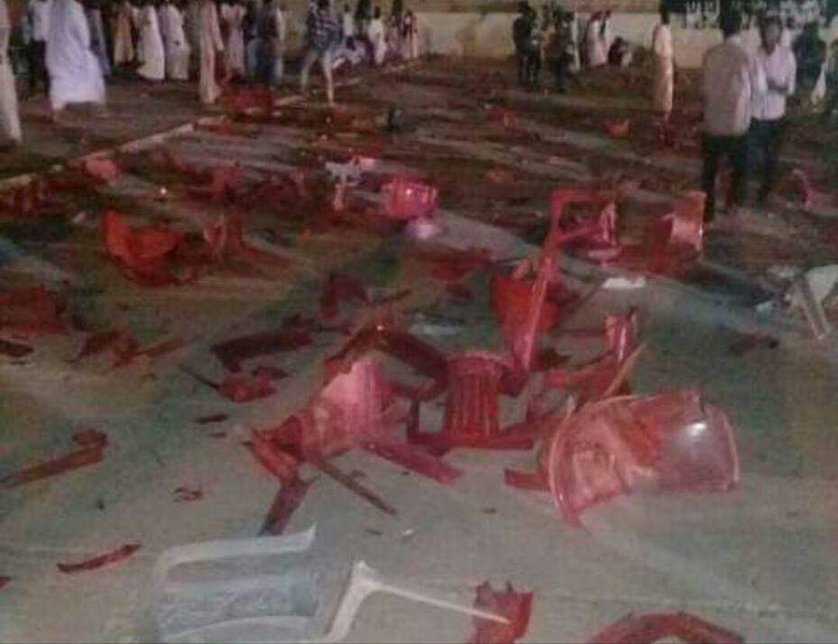 بالصور : اشتباكات عنيفة تؤدي إلى تحطيم مسرح “مهيرة “بمدينة دنقلا، أثناء حفل “النصري” والشرطة تفض الجمهور بـ “البمبان”