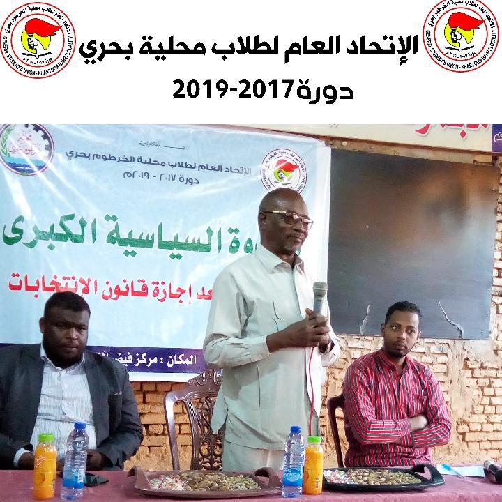 نظم الإتحاد العام لطلاب محلية بحري ندوة سياسية بعنوان ما بعد إجازة قانون الإنتخابات، دعا لها عدد كبير من الطلاب لشرح ما تم في إجازة قانون الإنتخابات من واقع أن شريحة الطلاب تمثل قاعدة كبيرة ضمن الكلية الانتخابية، لشرح ما تم في القانون والخطوات التي سيتم اتباعها لإنفاذ القانون وصولاً لمرحلة الانتخابات في العام 2020م. بحضور السيد السر المانجل عضؤ المجلس التشريعى.