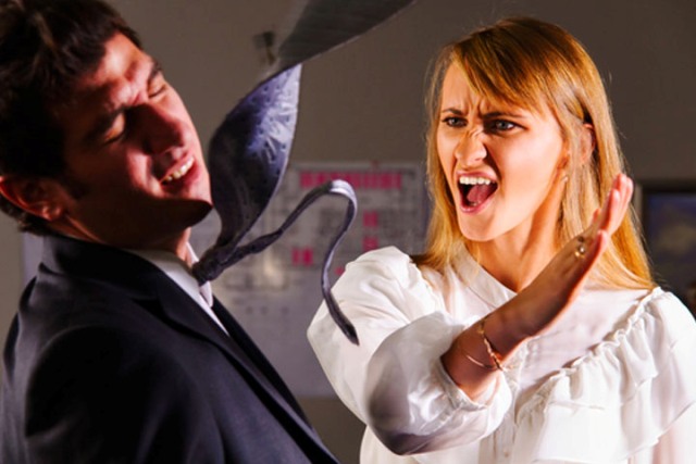 ولكن المتدربة لم تستجب لعبارات مدير البرامج (المتصابي)، الذي لم يجد طريقاً لـ(تليينها) سوى إتباع سياسة (العصا) بعد أن يئس من (الجزرة)، فأصبح يتعمد إهانتها ووصفها بالضعف، ولم تتحمل المذيعة المتدربة كل ذلك فأنفجرت في وجهه وجمعت شجاعتها وصفعته على وجهه بالـ(الكف) .