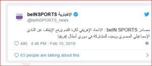 أعلنت شبكة بى أن سبورت الإخبارية، في خبر عاجل لها، ظهر اليوم الأحد، عن موافقة الاتحاد الأفريقي لكرة القدم (كاف)، على الالتماس المقدم من إدارة الإسماعيلي، على قرار استبعاده من دوري أبطال أفريقيا لكرة القدم، على خلفية أحداث الشغب الجماهيري، في مباراة الأفريقي التونسي، وعدم استكمال الطاقم التحكيمي الكاميروني للمباراة, وذكرت شبكة بي إن سبورتس الإخبارية، أن الكاف قرر رفع الإيقاف عن نادي الإسماعيلي، بعدما كان قد تقرر استبعاده من دوري الأبطال.