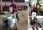 وقامت مجموعة من الشباب التي تمتطي الدراجات البخارية بحمل كميات من الثلج وتوزيعها للمواطنين في الطرقات والمقاهي بسوق كسلا.