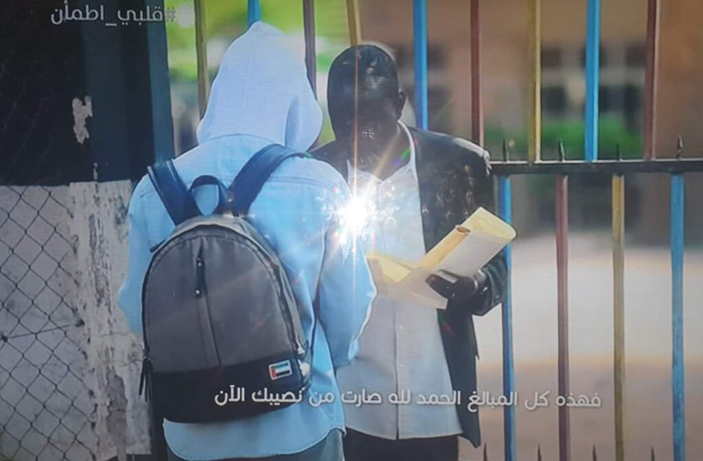 بدأ المعلم بوجهه الحزين المحبوب، هادئاً حامداً شاكراً لله بلا ضجر على ما أنعم، وهو يتحدث مع مقدم البرنامج الملثم الشاب الاماراتي “غيث” ، يسأله عن حالهم بالمدرسة وما يتقاضونه من أجر إن كان يكفيهم فأجابه لايكفي بالطبع ولكننا “على الله” .