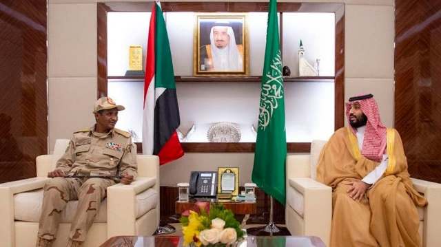 والتقى ولي العهد السعودي، الأمير محمد بن سلمان بن عبدالعزيز، في جدة، الخميس، نائب رئيس المجلس الانتقالي السوداني، الفريق أول محمد حمدان.