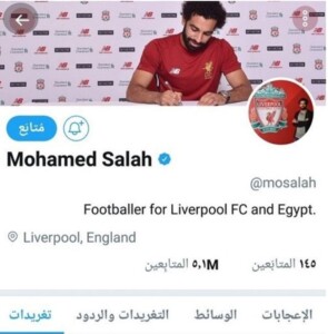 بالصور: ربطها البعض بالأحداث الحالية في مصر.. محمد صلاح يحذف اسم ‘مصر’ من تويتر