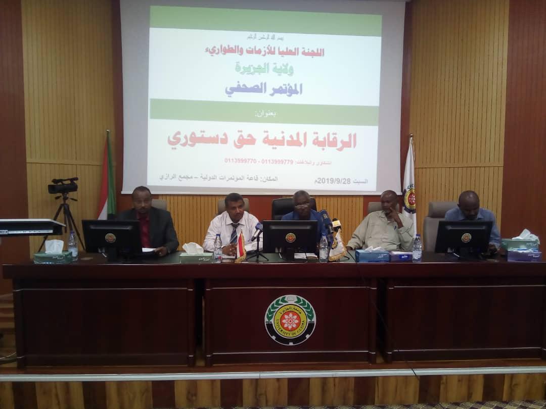 لجنة الأزمات والطوارئ بالجزيرة : الرقابة المدنية حق دستوري