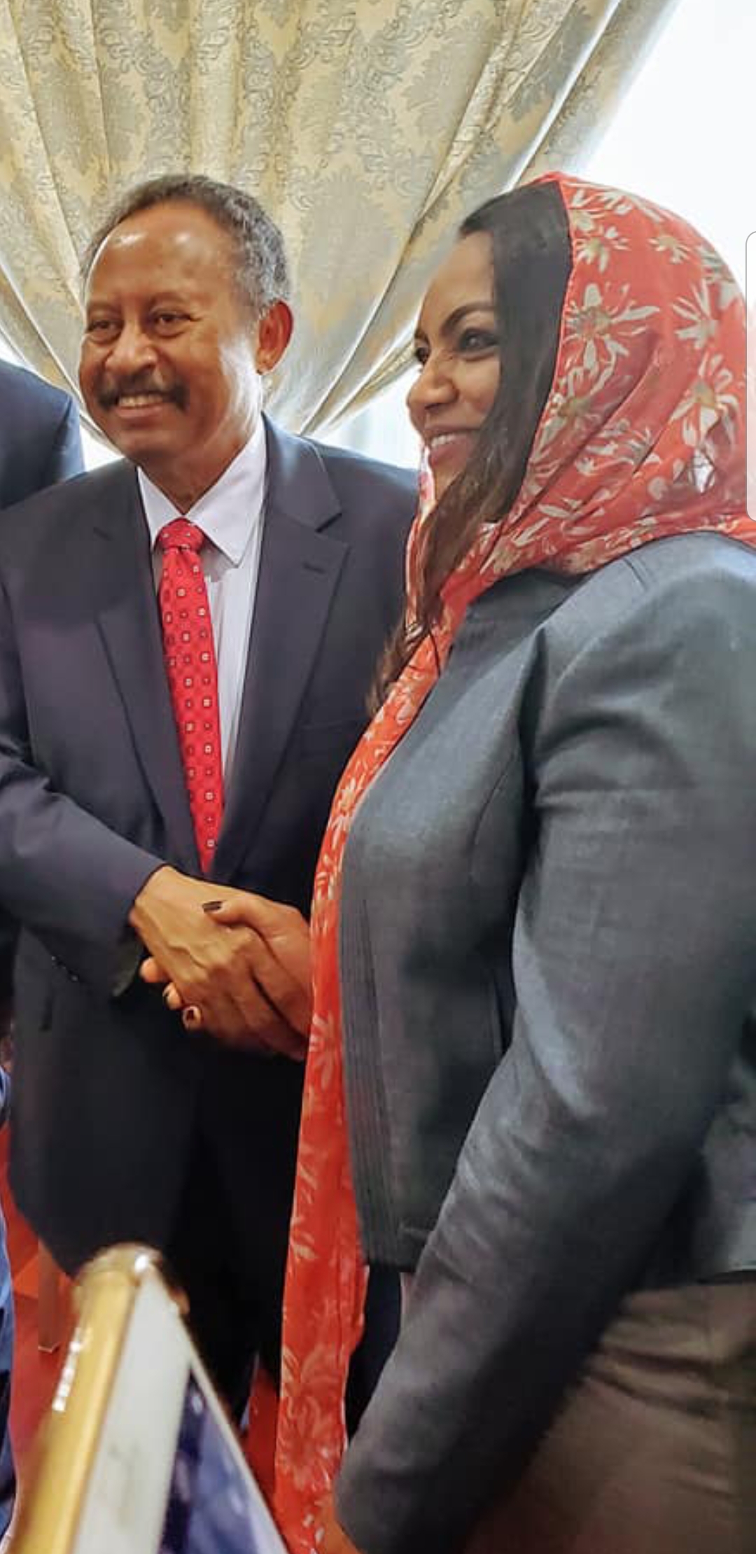وهي دبلوماسية سابقة تم فصلها في مطلع التسعينيات “للصالح العامّ” وعملت بعدها في عدد من المنظَّمات الدولية، وتزاملت مع “حمدوك” في ذات مجال العمل بالمنظمات الدولية.