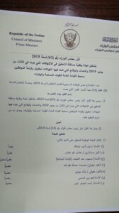 أصدر رئيس الوزراء عبدالله حمدوك قرار رقم (63) لسنة 2019 خاص بتشكيل لجنة وطنية مستقلة للتحقيق في أحداث فض الاعتصام أمام القيادة العامة.