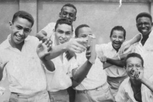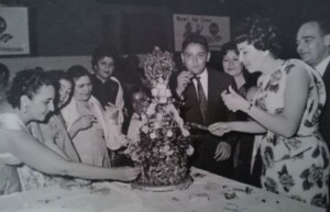 أما هذه الصورة فالتقطت في عام 1958 من حفلة أقامتها عائلة سيزار سويد في المركز الترفيهي أعقبت مراسم الاحتفال بوصوله سن البلوغ، ويظهر فيها مع والديه وبعض المدعوين وهم يشرعون في تقطيع كعكة من الشوكولاتة.