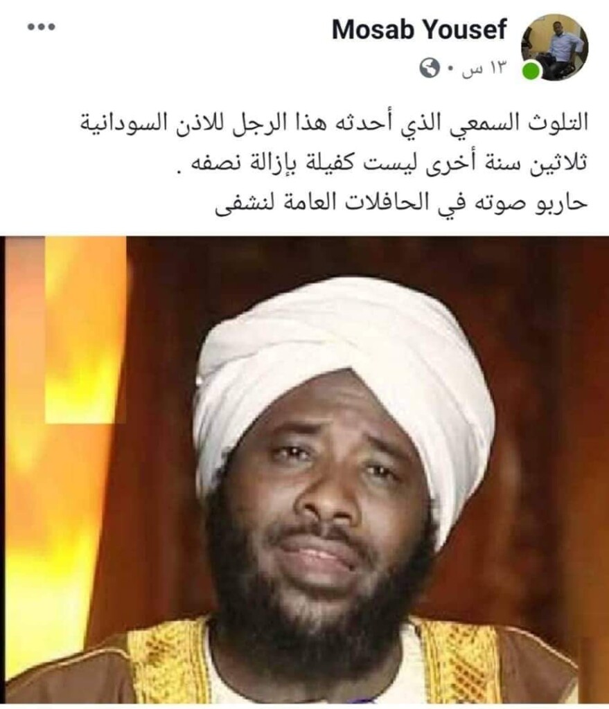 أثار ناشط سوداني بموقع التواصل الاجتماعي “فيسبوك” غضب وضجة واسعة في أوساط رواد مواقع التواصل الاجتماعي “فيسبوك” بعد دعوته لمحاربة صوت الداعية السوداني الشهير الفقيد “محمد سيد حاج” في المركبات العامة، لأنه يسبب “تلوث سمعي” للأذن السودانية، على حد قوله.