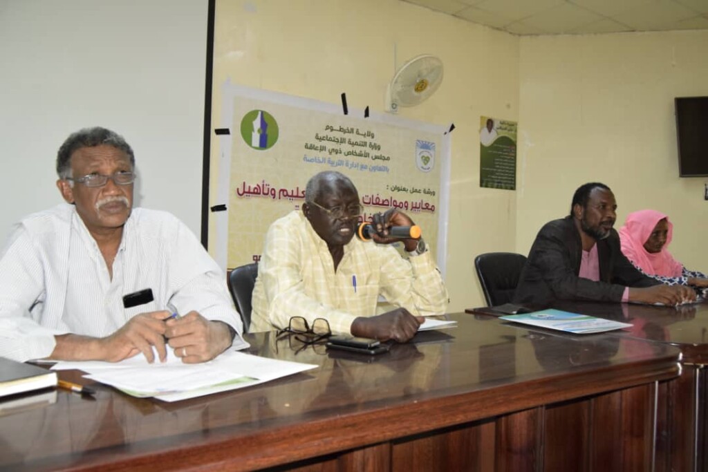 نظم مجلس الأشخاص ذوي الإعاقة بالتعاون مع إدارة التربية الخاصة بوزارة التربية ولاية الخرطوم ورشة عمل حول(معايير ومواصفات مؤسسات تعليم وتأهيل الأشخاص ذوي الإعاقة) وذلك اليوم الأربعاء ، بمباني وزارة التربية والتعليم الخرطوم .