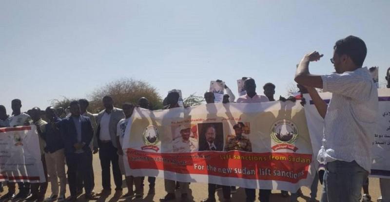 نظمت مجموعة (كلنا حميدتي) وقفة احتجاجية لتقديم مذكرة للسفارة الأمريكية، مطالبة برفع اسم السودان من قائمة الدول الراعية للإرهاب.