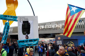 ونشرت صحيفة “ماركا” الإسبانية صورًا للمتظاهرين المحتشدين بالقرب من الملعب، والذين رفعوا لافتات تطالب باستقلال الإقليم ومنددين بأحكام السجن التي صدرت بحق تسعة رموز سياسية في كاتالونيا.