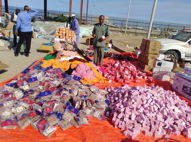 تمكنت شعبة الإفراج المؤقت بجمارك ميناء الأمير عثمان دقنه من إحباط عملية تهريب لسلع نوعية تمثلت في398 كيس صندل عبوة الكيس كيلو ونصف، 1458علبة صندلية 50جراما،3جوالات محلب زنة 50كيلو،717علبة كريم جسم جلسويد،248فتيل دهن صندل،10كراتين زنة4دست بف باف،60باكو ورق تظليل زنة30مترا،93توب بولستر مقاس 25ياردة.