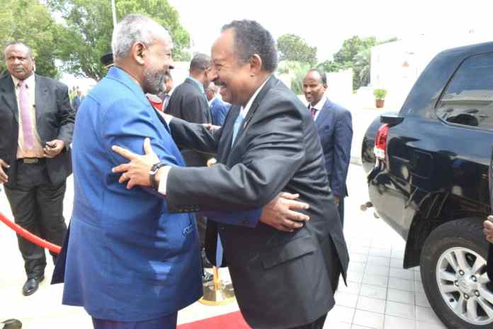 حمدوك يعقد جلسة مباحثات مشتركة مع الرئيس الجيبوتي