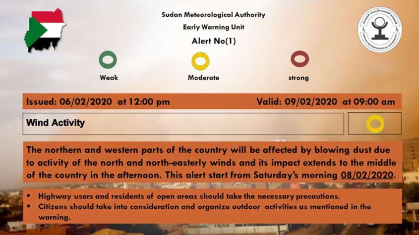 وتوقعت الهيئة أن تصل درجة الحرارة الصغرى في المناطق الشمالية إلى (5) درجات مئوية، ونوهت إلى أن درجة الحرارة الصغرى في الخرطوم يمكن أن تتفاوت ما بين (12- 14) درجة مئوية.