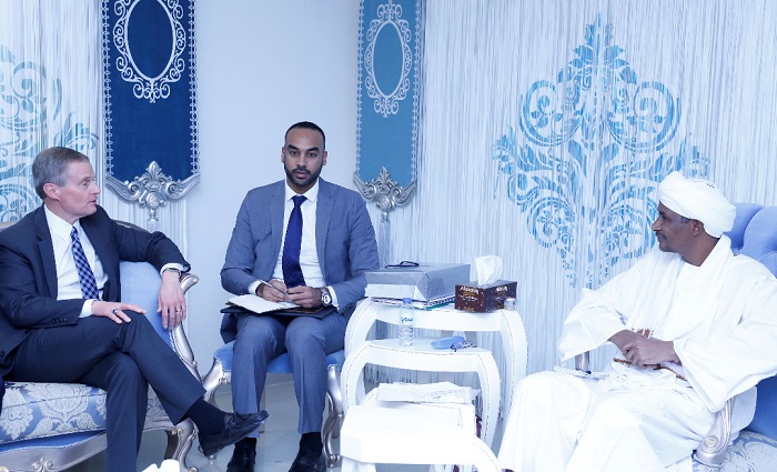 التقى النائب الأول لرئيس مجلس السيادة الانتقالي الفريق أول محمد حمدان دقلو بمقر إقامته مساء أمس وفد منظمة استيرلينغ الأمريكية العاملة في المجالات الإنسانية برئاسة ادوار بيرو.