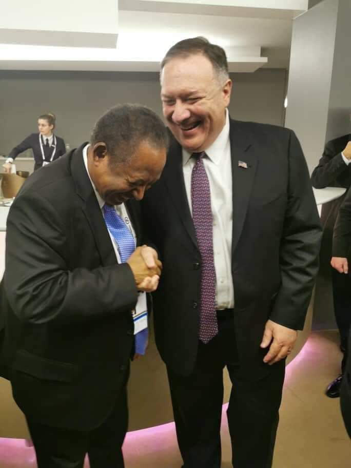 وأظهرت الصور التي تداولها رواد مواقع التواصل الاجتماعي، الأجواء الودية وتبادل الابتسامات مابين حمدوك و بومبيو، كشفتها لغة الجسد التي توحي بالانسجام، في أول لقاء جمع بينهما منذ تسلم حمدوك لرئاسة مجلس الوزراء.