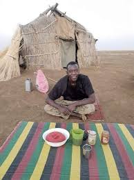 وظهر الجندي بحسب صحيفة السودانى بزي عسكري و خلفه مسكنه المتواضع من القش، جالساً على بساط في انتظار دخول الوقت لتناول افطاره الذي بدأ متقشفاً.