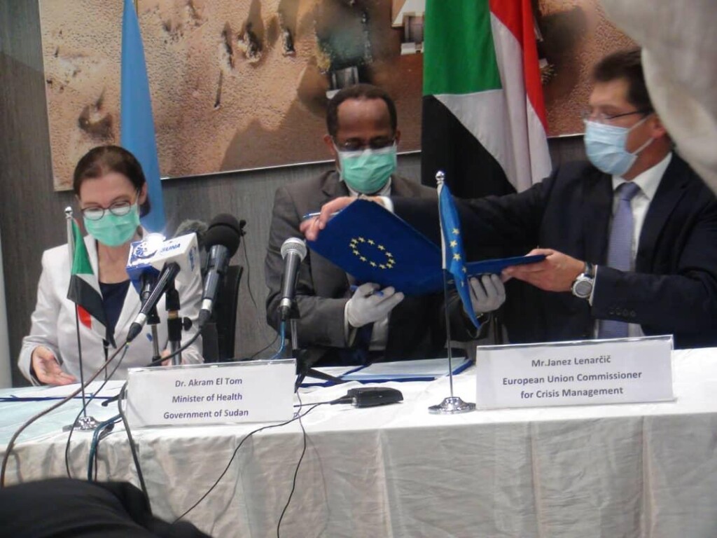 وقعت وزارة الصحة الإتحادية ظهر اليوم بمطار الخرطوم الدولي اتفاقية ضمت الاتحاد الاوروبي ومنظمة الصحة العالمية، على برنامج بقيمة 11.5 مليون يورو، حيث تتولى منظمة الصحة العالمية تنفيذ مشروع الاتفاقية بالتنسيق مع وزارة الصحة الاتحادية، فضلا عن انه سيتم توجيه 10 مليون يورو من خلال صندوق الطوارئ الاستئماني للاتحاد الأوروبي لافريقيا لمعالجة الاحتياجات الحرجة في المنظومة الصحية والمراقبة الوبائية والاستجابة للوباء في ظل جائحة كورونا، كما تم ايضا التوقيع على اتفاقية بين مجلس اللاجئين النرويجي مع حكومة السودان لدعم قطاع التعليم في السودان.