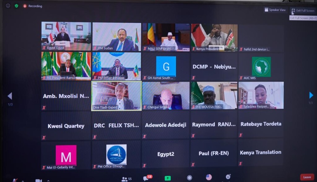 انعقدت اليوم القمة الأفريقية الخاصة بسد النهضة عبر تقنية الفيديو كونفرس والتي ترأسها السيد شيريل رامافوزا رئيس الدورة الحالية للاتحاد الأفريقي بمشاركة رئيس مجلس الوزراء د.عبدالله حمدوك والرئيس المصري عبدالفتاح السيسي ورئيس الوزراء الاثيوبي د. أبي أحمد بجانب مشاركة مفوضية مكتب الاتحاد الأفريقي؛ ورؤساء كينيا؛ والكنغو ومالي .