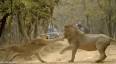 ووثق المصور زوبين أشارا الواقعة في غابة “غير” الهندية، إذ ظهرت اللبؤة وهي تزأر في وجه الأسد وتحاول ضربه على وجهه وكأنها تصفعه، فيما يحاول هو تجنبها وعبور الطريق.