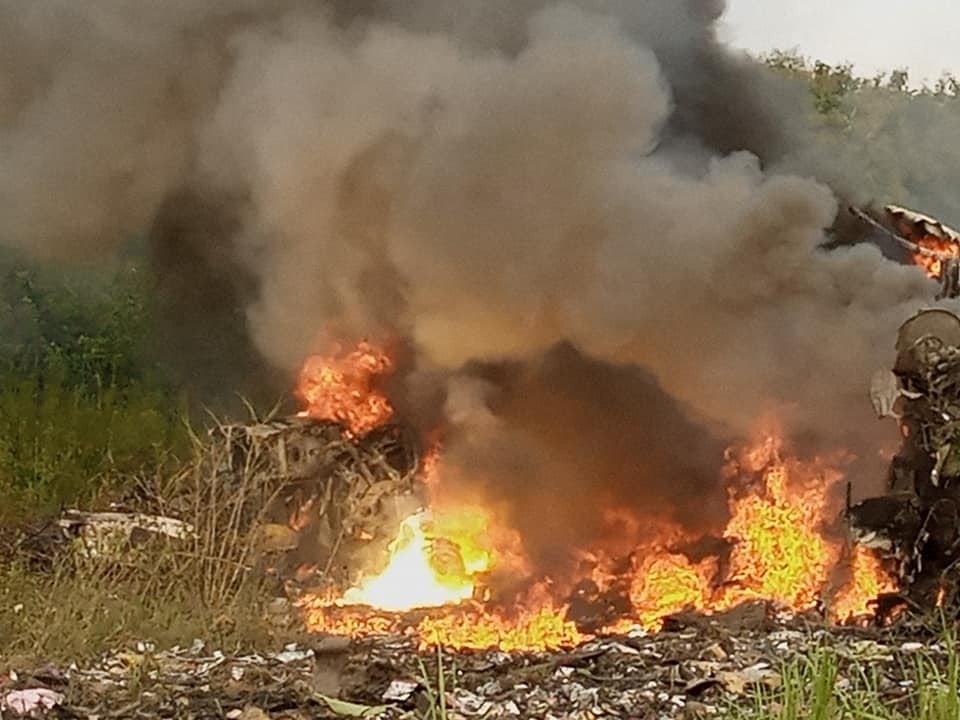 شاهد الطائرة المنكوبة التي تحمل أموالاً وهي تحترق غرب جوبا