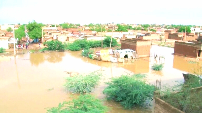 بينما غمرت المياه قرى بكاملها في مناطق في شرق وجنوب الخرطوم.