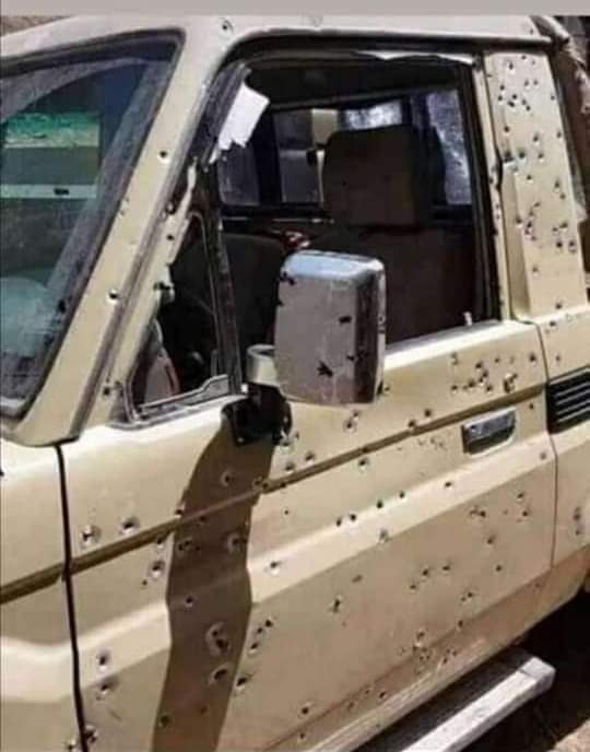 شاهد بالصورة: مشهد صادم لـ«وابل من الرصاص» على سيارة شُهداء الواجب بشمال السودان