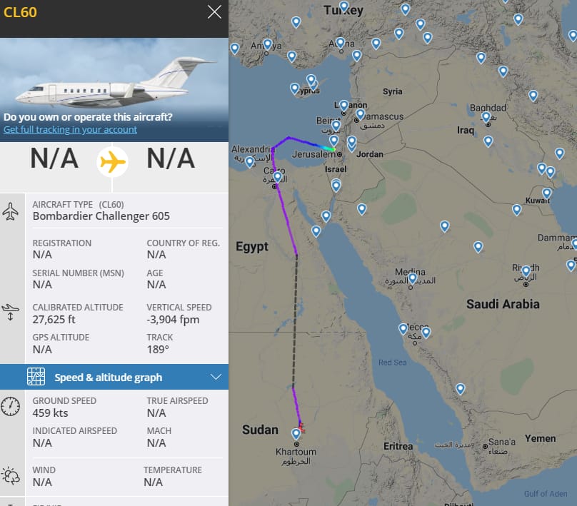 وكشفت أجهزة رصد الطيران العالمية وفق صحيفة السوداني، أن الطائرة مستأجرة من مالطا (9H-VFJ) أقلعت مباشرة من مطار بن غوريون إلى العاصمة الخرطوم، وغادرت قبل قليل.