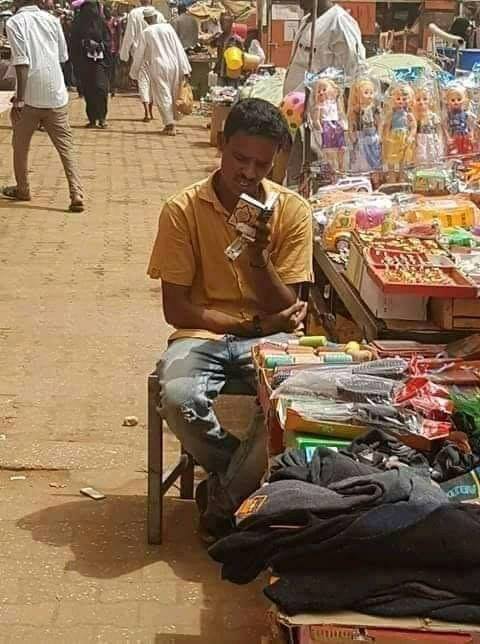 تداول رواد مواقع التواصل الاجتماعي صورة لشاب سوداني يتلو القرآن أثناء عمله في إحدى الأسواق في منظر نال إعجاب العديد من المعلقين على الصورة.