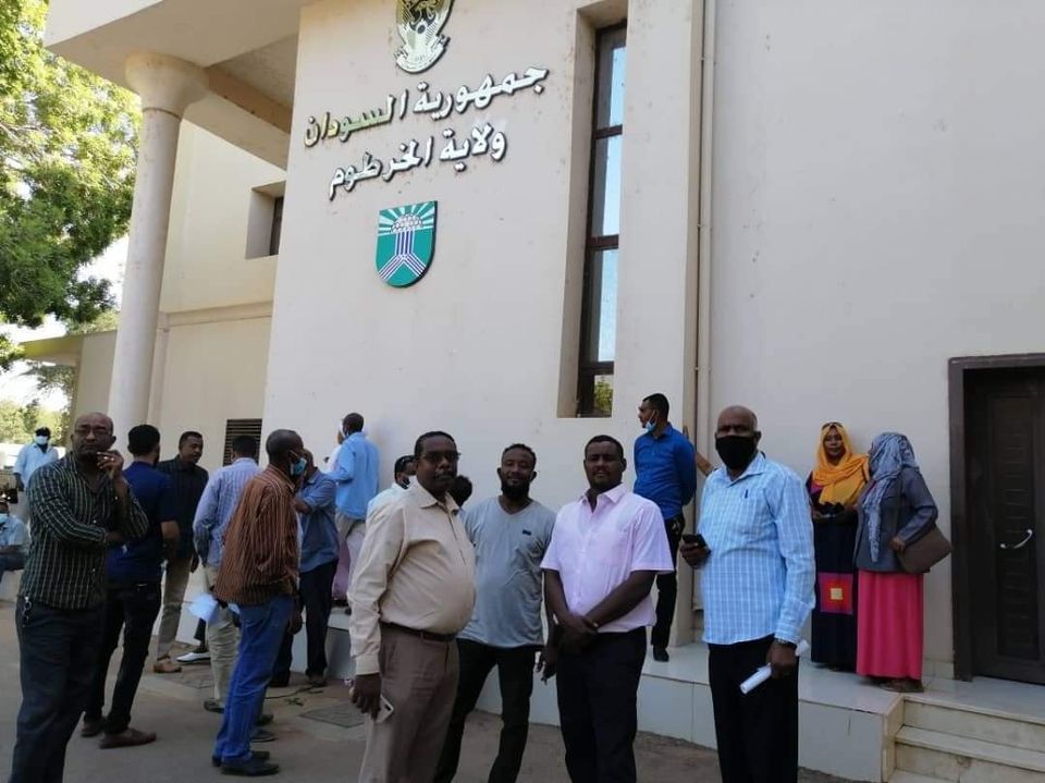 تجمع عدد من اصحاب الصالات امام مباني ولاية الخرطوم، احتجاجا على قرار منع الحفلات ومناسبات الزواج وفق العربية -السودان