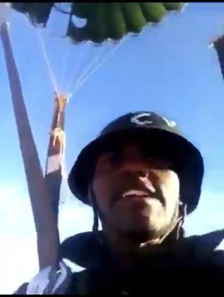 وظهر احد ابطال الدفعة 63 بثبات منقطع النظير، وهو يصور سيلفي في الجو ويهتف بشعار المظلات (قليلون في الأرض كثيرون في السماء) محيياً قائده.