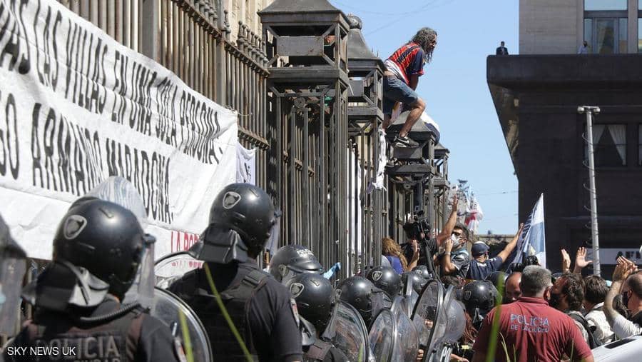 تحولت جنازة أسطورة كرة القدم الأرجنتيني الراحل، دييغو مارادونا، إلى مواجهة ساخنة بين رجال الشرطة وآلاف الغاضبين في العاصمة بوينوس آيرس، بعدما عجزوا عن إلقاء نظرة أخيرة على نعش اللاعب الذي توفي، يوم الأربعاء، وخلف رحيله تأثرا عالميا واسعا.