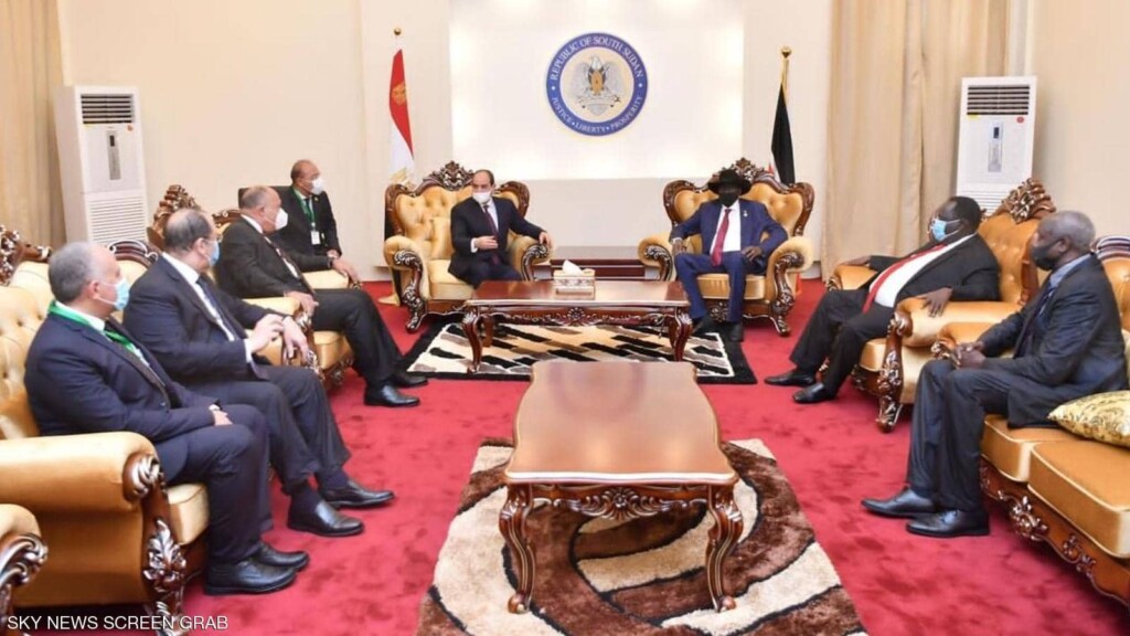 وأكد الرئيس المصري وفق سكاي نيوز خلال المباحثات على دعم مصر الكامل لجهود الرئيس سلفا كير ميارديت، ونائبه رياك مشار، وجميع الأطراف الجنوب سودانية من أجل تحقيق السلام في البلاد.