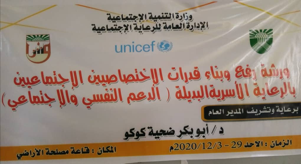 أعلنت الأستاذة عالية محمد عوض الكريم مدير الوحدة الفنية لنظام الرعاية الأسرية البديلة بوزارة التنمية الإجتماعية ولاية الخرطوم عن توظيف ( 100) من الباحثين الإجتماعيين والنفسيين بالتعاون مع اليونسيف لصالح نظام الرعاية الأسرية البديلة .