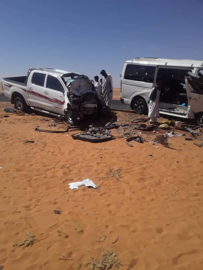 ادي تصادم مركبة حافلة هايس ومركبة بوكس الي وفاة 8 أشخاص وإصابة 5 آخرين وتلف بالمركبتين بمنطقة الدبة بالولاية الشمالية وبحسب منشور على صفحة المكتب الصحفي للشرطة اطلعت عليه كوش نيوز فأن الحادث وقع عندما كان سائق الحافلة هايس موديل 2016 متجها من الشمال الي الجنوب وعند وصوله للكيلو 214